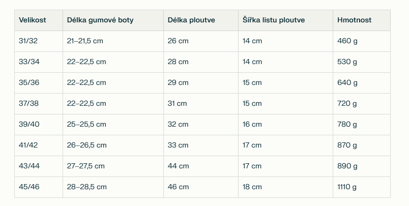 • Speciální boční výztuhy – zvyšují odolnost ploutví, směrují proudění vody a snižují vibrace způsobené turbulencemi